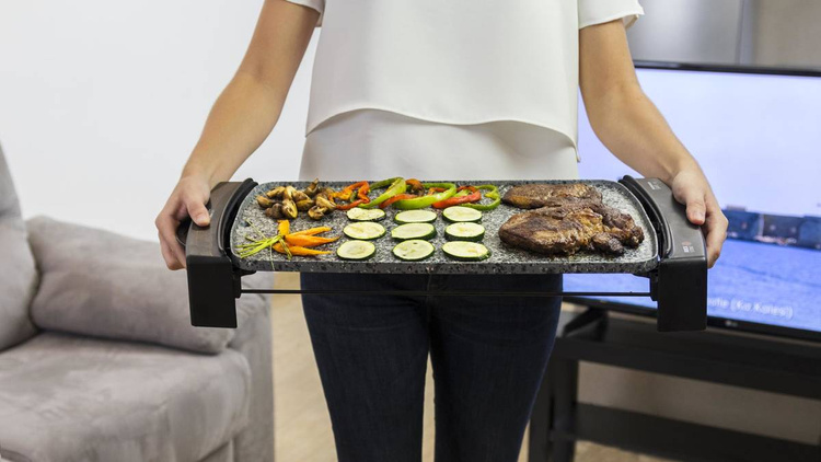 Płyta elektryczna do smażenia o wysokiej mocy, można myć w zmywarce, korpus z odlewu aluminiowego z pokryciem RockStone..