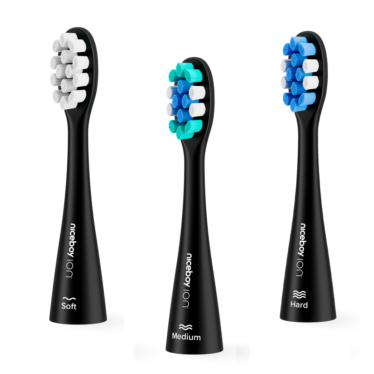⭐ Rozpoczynając swoją przygodę z Niceboy ION Sonic, masz pewność, że od razu znajdziesz idealną końcówkę dla siebie. W opakowaniu, wraz ze szczoteczką, otrzymujesz kompletny zestaw trzech końcówek o różnych stopniach twardości – miękką (soft), średnią (medium) i twardą (hard). To spersonalizowane podejście do higieny jamy ustnej pozwala Ci od razu wybrać końcówkę, która dokładnie odpowiada Twoim potrzebom i preferencjom, a także kondycji Twoich dziąseł i wrażliwości zębów.