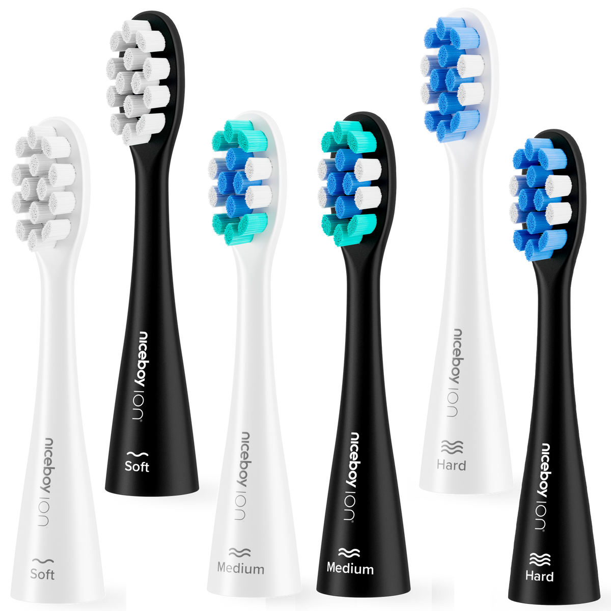 ☑️ 2x 3 szt. końcówek szczoteczki (1 szt. miękka, 1 szt. średnia, 1 szt. twarda)