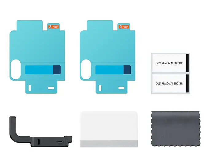 ✅ Zawartość zestawu: 2 × folia ochronna antyrefleksyjna Samsung Screen Protector, 2 × naklejki do usuwania drobinek kurzu,1 × ściereczka z mikrofibry do czyszczenia ekranu,1 × szpatułka (ściągaczka) do wygładzania, 1 × aplikator ułatwiający precyzyjne naklejenie