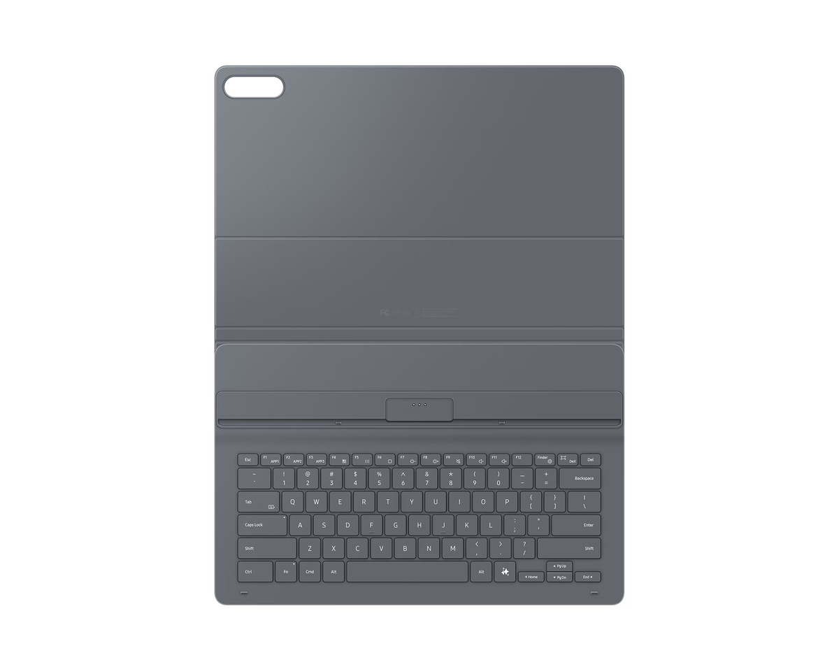 ⭐ Samsung Book Cover Keyboard Slim został zaprojektowany z myślą o mobilności i stylu. Jego smukła forma idealnie dopasowuje się do Galaxy Tab S11 Ultra, nie zwiększając wagi urządzenia. Czarna obudowa z subtelnym szarym wnętrzem tworzy elegancki kontrast, a metalowy akcent wokół aparatu dodaje luksusowego charakteru.