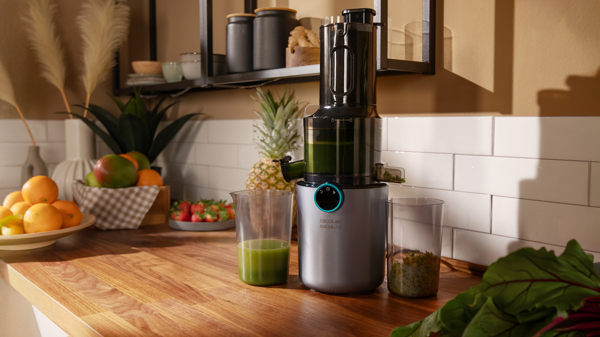 ⭐ Rozpocznij dzień od szklanki pełnej witamin! Wyciskarka wolnoobrotowa Cecotec Juice&Live 1500 Slim z silnikiem 200 W i niską prędkością 55 obr./min pozwala uzyskać maksymalną ilość soku z owoców i warzyw, zachowując ich naturalny smak, kolor i wartości odżywcze. Cicha, wydajna i niezwykle prosta w obsłudze.